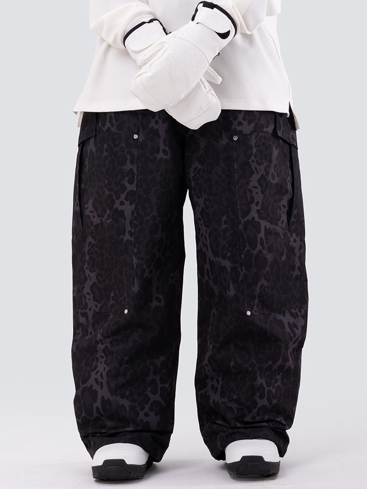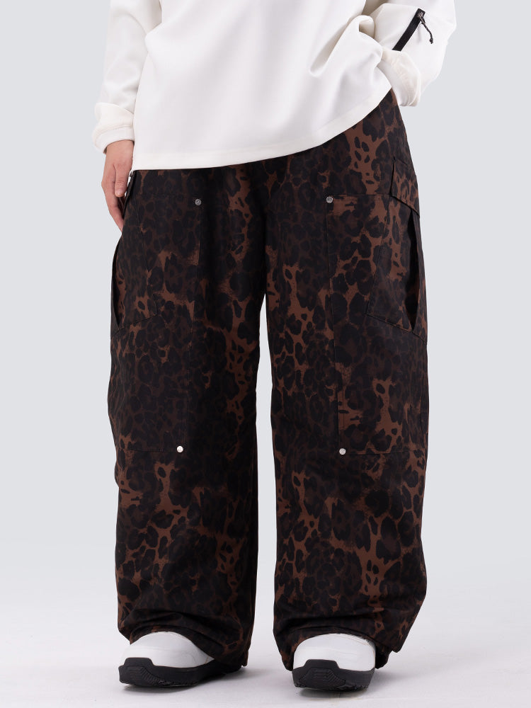 Women's Double Knee Mountain Freestyle Leopard Baggy Snow Pants